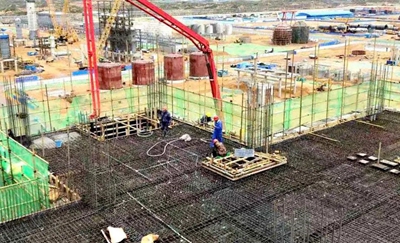 鍋爐汽輪機主廠房是熱動力系統標桿性建筑,結構錯綜復雜,為鋼筋混凝土框架及鋼屋架結構,是整個動力站裝置單體工程量最大、技術難度最高的建筑。主廠房框架高38.35米,寬41.7米,長140米,共澆筑混凝土約12000立方米,綁扎鋼筋約3600噸,占地面積10426平方米,建筑面積22210.92平方米。自主廠房樁基施工以來,在十分緊張的工期下,項目組精心組織、精心指揮、精心管理,采用新工藝、新技術、新材料等施工技術措施。施工過程中,項目組始終堅持把工程安全、質量放在各項工作的首位,積極與監理及建設單位配合,加強對分包單位的統一調度、協調和管理,嚴把質量關。