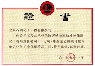 喜報(bào)!公司總承包榆神乙醇項(xiàng)目獲得多項(xiàng)榮譽(yù)